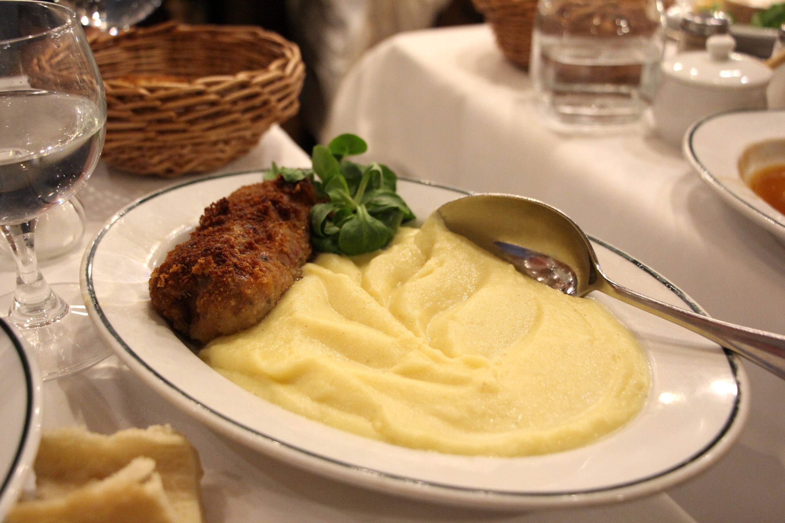 This dish was the perfect example of the French belief that tout est bon dans le cochon (everything in the pig is good). The trotter had been cooked low and slow until its gelatinous texture and rich, savory flavor were set to their best advantage. The crispy breaded-and-fried exterior offered a lovely juxtaposition in texture, and the buttery potatoes were marvelous. It was far from refined haute cuisine – especially when sitting so humbly across from the pretty scallop dish – but I would order it again in a heartbeat.