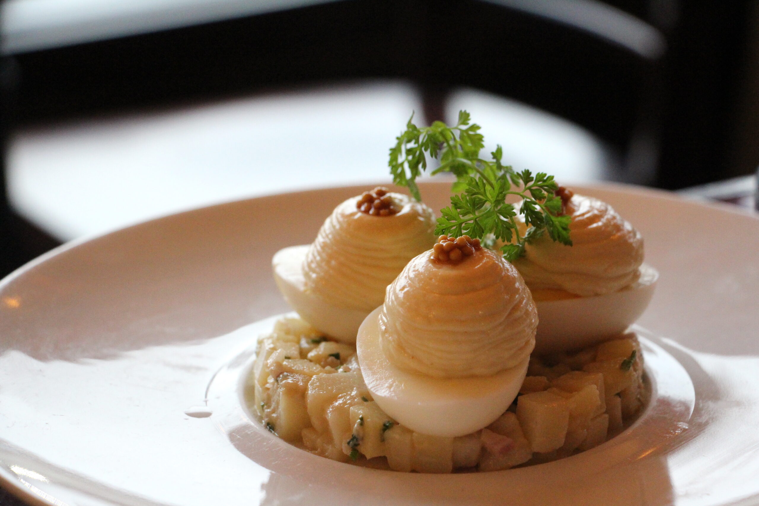 The other appetizer, 2022’s World Champion egg-mayo (12), more than deserved the accolades. The jammy yolks of these perfectly-cooked eggs were topped with a veritable mountain of homemade mayonnaise and pickled mustard seeds. A base of potato salad was perfectly serviceable and helped justify the slightly eye-watering price tag.