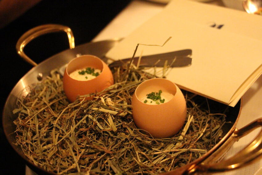 Perkins puts a lot of thought not just into the flavor of each dish but also its concept, as is showcased with this trout rösti, topped with a trout tartare and cooked, he told us, in trout fat. While the flavor was on-point, conceptually, this rösti missed the mark a bit, as the trout fat didn’t really come through on the palate. Make no mistake: It was delicious, and if hadn’t been told about the trout fat, I wouldn’t have missed it. But the storytelling promised one thing, and the bite delivered another.