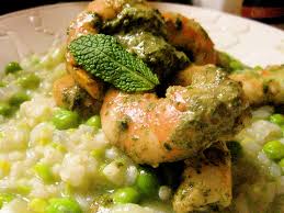 Shrimp with Mint Pesto and Sweet Pea Risotto (adapted from Well Fed)