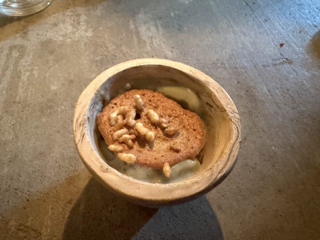 This hearty play on a French classic of pommes boulangères paired tender potatoes cooked in a moreish broth and black hazelnut. While the tuile on top offered nice texture, it wasn’t the most flavorsome part of the dish. That honor went to the sauce: rich and creamy with almost cocoa-y vibes.